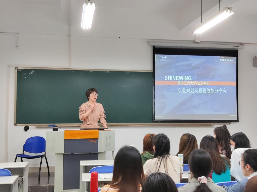 主讲人张莉娟老师作为信永中和集团税务板块合伙人,从事中介行业近二十余年,拥有中国注册税务师和中国注册会计师等职业资格,擅长各种财务和税收的高端筹划、各类涉税鉴证、咨询顾问、企业涉税风险控制、企业重组及房地产整体税收筹划等工作,同时还是中国注册税务师协会常务理事、重庆经济信息委员会专家库成员等。其理论和实践经验十分丰富。张老师凭借自己的多年的工作经验与丰富履历向同学们介绍了职业规划以及相关的税务筹划。