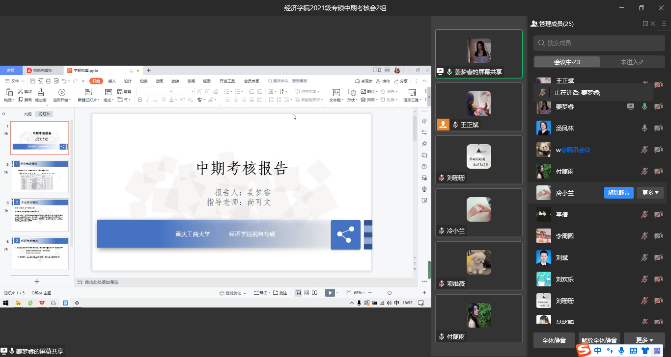 2023年1月6日,伟德国际bevictor1946通过企业微信线上会议形式组织召开2021级税务硕士中期考核。尚可文教授、汤凤林教授带领4位导师组成专家组,组织开展了本次考核。