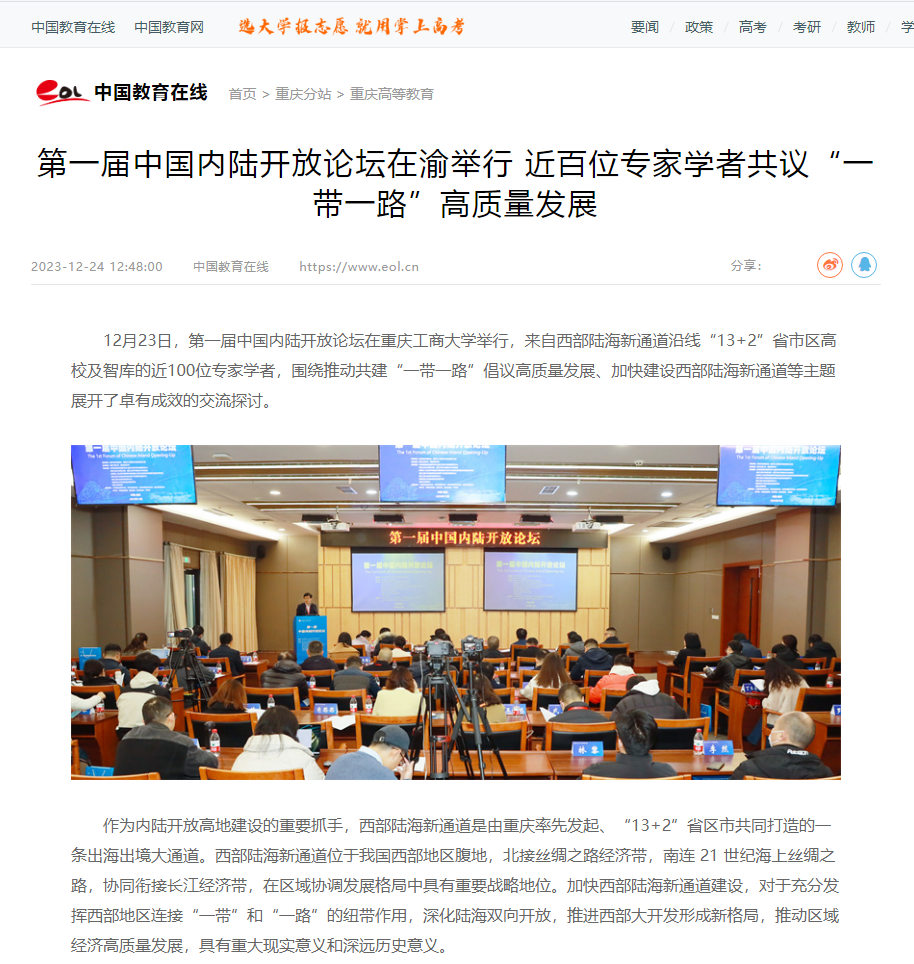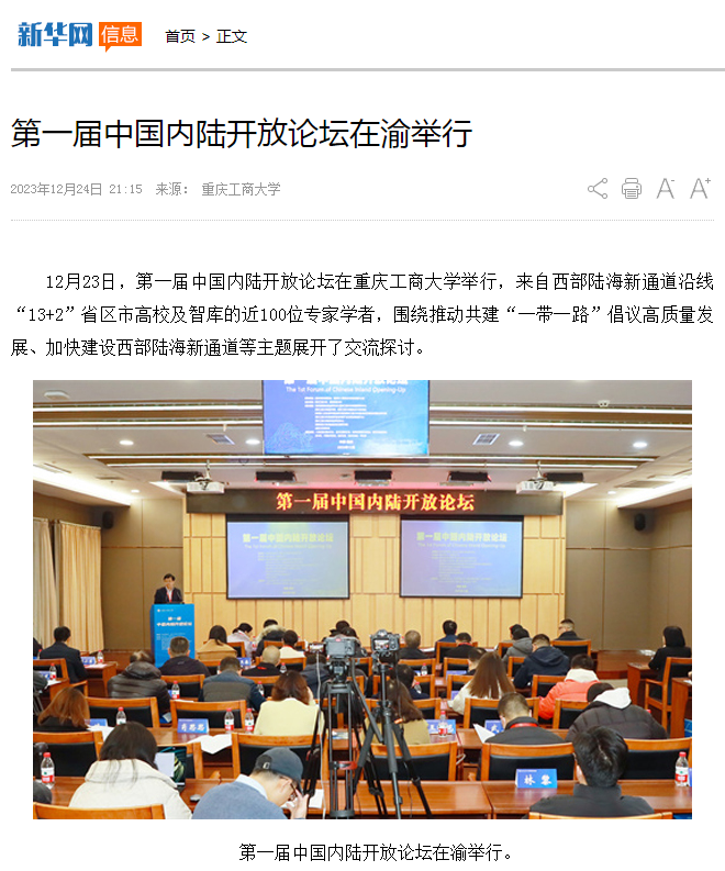 12月23日,第一届中国内陆开放论坛在伟德源自英国始于1946举行,来自西部陆海新通道沿线“13+2”省市区高校及智库的近100位专家学者,围绕推动共建“一带一路”倡议高质量发展、加快建设西部陆海新通道等主题展开了卓有成效的交流探讨。本次论坛由重庆市教育委员会、重庆市人民政府口岸和物流办公室指导;伟德源自英国始于1946、西南财经大学主办;教育部国别和区域研究中心伟德源自英国始于1946东南亚研究中心、伟德国际bevictor1946、伟德源自英国始于1946国际合作与交流处、教育部人文社会科学重点研究基地成渝地区双城经济圈建设研究院、伟德源自英国始于1946成渝经济区城市群产业发展协同创新中心、伟德源自英国始于1946数字经济研究中心、西南财经大学成渝经济区发展研究院、成都大学商公司等联合承办。