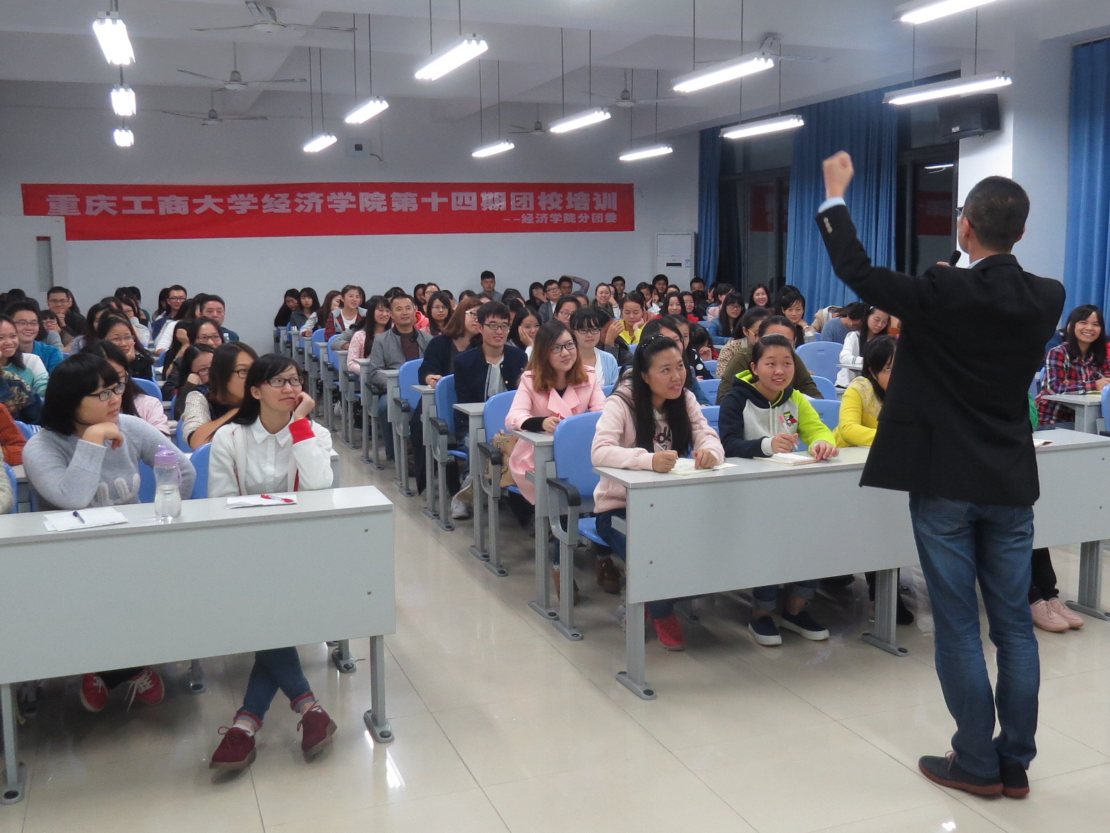 本次团校培训包括员工干部能力培养、演讲与面试技巧讲解以及PPT设计与制作三个版块,旨在提高班团干部的综合素质,让他们在学习、工作和生活中更好地发挥带头作用。在员工干部能力培养版块中,校团委陆嘉老师表示,作为员工干部,理性的思维能力能够让我们更好地处理与同学、老师之间的关系,而对社会的理性认知和成熟的思想能够让我们时刻保持清醒的头脑,减少工作中的错误。她还表示,员工干部一定要学会思考,工作要接地气,只有接地气才能更好地开展工作。在演讲与面试技巧版块,重庆市演讲爱好者协会秘书长赵言老师从演讲技巧在面试中的重要性、演讲七要素和老员工面试现状等方面向大家介绍了一些演讲基本技巧。他表示,优秀的演讲者会在面试中脱颖而出,在演讲时不仅要做到以听众为中心,恰到好处的肢体语音同样也可以增强演讲效果。他还强调“真、新、潮”这三个字是面试的法宝,即在创新主题的同时也要多关注潮流和实事,并以真诚的态度对待面试。在最后的PPT设计与制作版块,公司保卫处邹奇副处长通过PPT在实际生活中不同场合的应用以及在未来学习与求职时制作PPT的要点,对PPT的具体操作进行了生动的演示。他表示,在PPT的设计与制作中,最重要的是作者的构思和想象力,只有拥有不受拘束的思维,坚持实事求是的本心,才能使作者的构思完整地呈现于PPT中。
