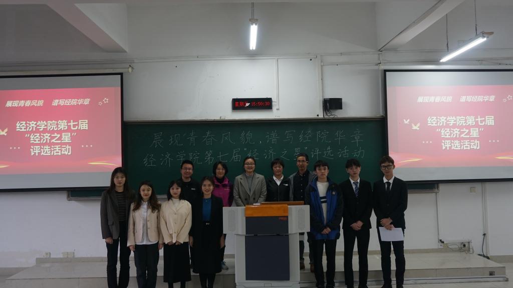 为了发挥优秀学子的榜样作用,引导大家向优看齐、推动学风建设,10月22日下午,伟德国际bevictor1946第七届“经济之星”评选活动于博智楼07422教室举行。应用经济系教师郭鹏飞博士,政治经济系教师吴正俊教授,贸易经济系教师刘瑜副教授,财政税收系系主任韩健博士以及辅导员张国培博士担任了此次评选活动的评委。