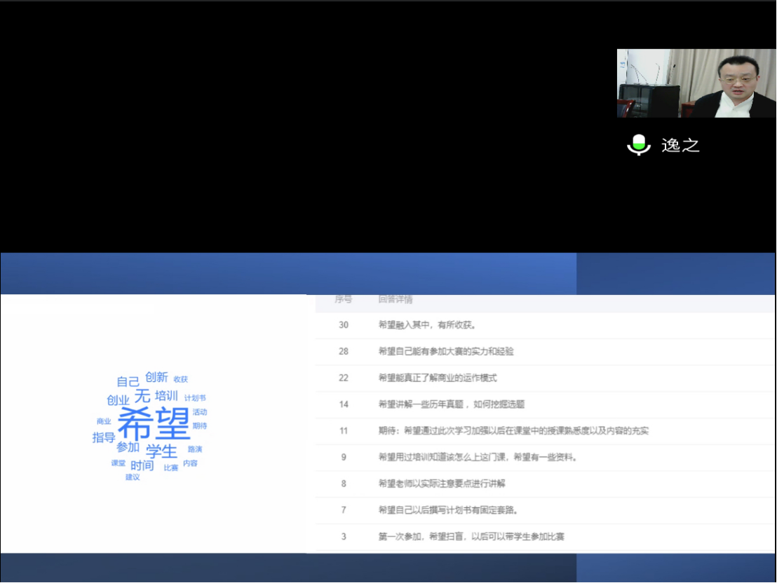 培训会伊始,尹元福副经理提出了公司对此次大赛的高度支持,和对同学们参加大赛的一个殷切希望。培训会上,钟声老师从不同角度剖析各类型的创新创业大赛,结合案例讲解和视频展示,从比赛内容、比赛规则以及注意事项三个方面展开具体讲解。着重讲解了如何打造高质量商业计划书提出了自己总结的高质量商业计划书要做到“心态好”、“要素全”和“格式美”三板斧。在传授路演答辩的相关技巧时,强调要“信念强”、“人财好”和“三据实”。最后,钟声老师针对同学们在参赛中的困惑进行了一一解答,鼓励同学们从想法入手,打破空间限制,大胆创新。