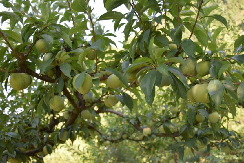 “这些都是我家的李子,就指望着它们过活嘞!”农户张奶奶作为赶谢李和状元桃产业发展的见证者,近年也在果品专业合作社的帮扶下开始种植李子。目前,全村93家农户中平均每户就有一位村民从事水果种植,布朗李和蓝桃种植的规模已达800亩,成为推动盐河村经济发展的重要产业。