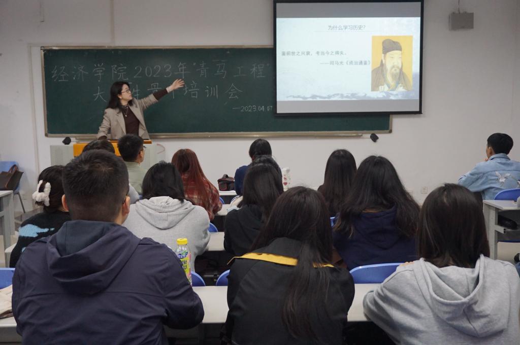 管理科学与工程公司封海粟老师为同学们带来“语言的艺术”课程,封老师在对语言技巧讲解的过程中伴有生动形象的演示,同学们主动参与其中,课堂氛围轻松愉快。同学们在与老师的积极互动下,逐渐掌握正确的发音技巧,深刻感受语言的魅力,更加深入地体会到了语言艺术的重要性。马克思主义公司魏新欣老师为同学们带来“第二堂课——学习贯彻党的二十大精神,努力成为堪当民族复兴大任的时代新人”的主题学习。魏老师详细讲解了为什么要了解党史、了解党史的重要途径以及中国百年党史的三条发展脉络。通过对党史进行梳理的过程中,坚定同学们担当民族复兴大任的决心和信心。同时,魏老师还推荐大家积极阅读党的二十大精神相关书籍,从中汲取精神力量,汇聚成实现中华民族伟大复兴中国梦的涓涓细流。经济公司党委白海龙副书记为大家开展“青春正当时,聚力勇担当”员工干部专题培训。白书记指出,“不积跬步无以至千里,细节决定成败,作为员工干部,同学们更应该从细节出发,做好每一项工作”。白书记鼓励经院青年学子树立主人翁意识、服务意识和职责意识,教导大家主动思考、主动作为、主动反思,更好的践行青年马克思主义者精神,成为更理想的自己。