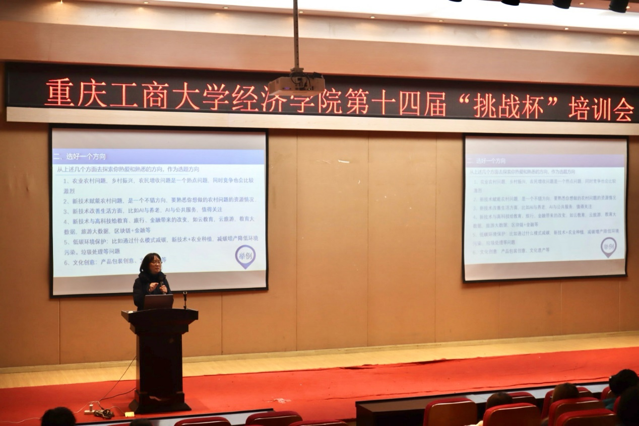 为加强伟德国际bevictor1946学子对本届“挑战杯”竞赛内容与评分细则的理解,传授相关比赛技巧,解答同学备赛问题,增强选手竞赛自信心,12月13日中午,伟德国际bevictor1946分团委员工会在田家炳书院209成功举办了第十四届“挑战杯”中国老员工创业计划竞赛伟德国际bevictor1946院内选拔赛培训会。本次培训会面向全体伟德国际bevictor1946学子。伟德国际bevictor1946贸易经济系主任,第十八届“挑战杯”全国老员工课外学术科技作品竞赛重庆赛区特等奖队伍指导老师杨海丽教授作为嘉宾出席本次培训会。