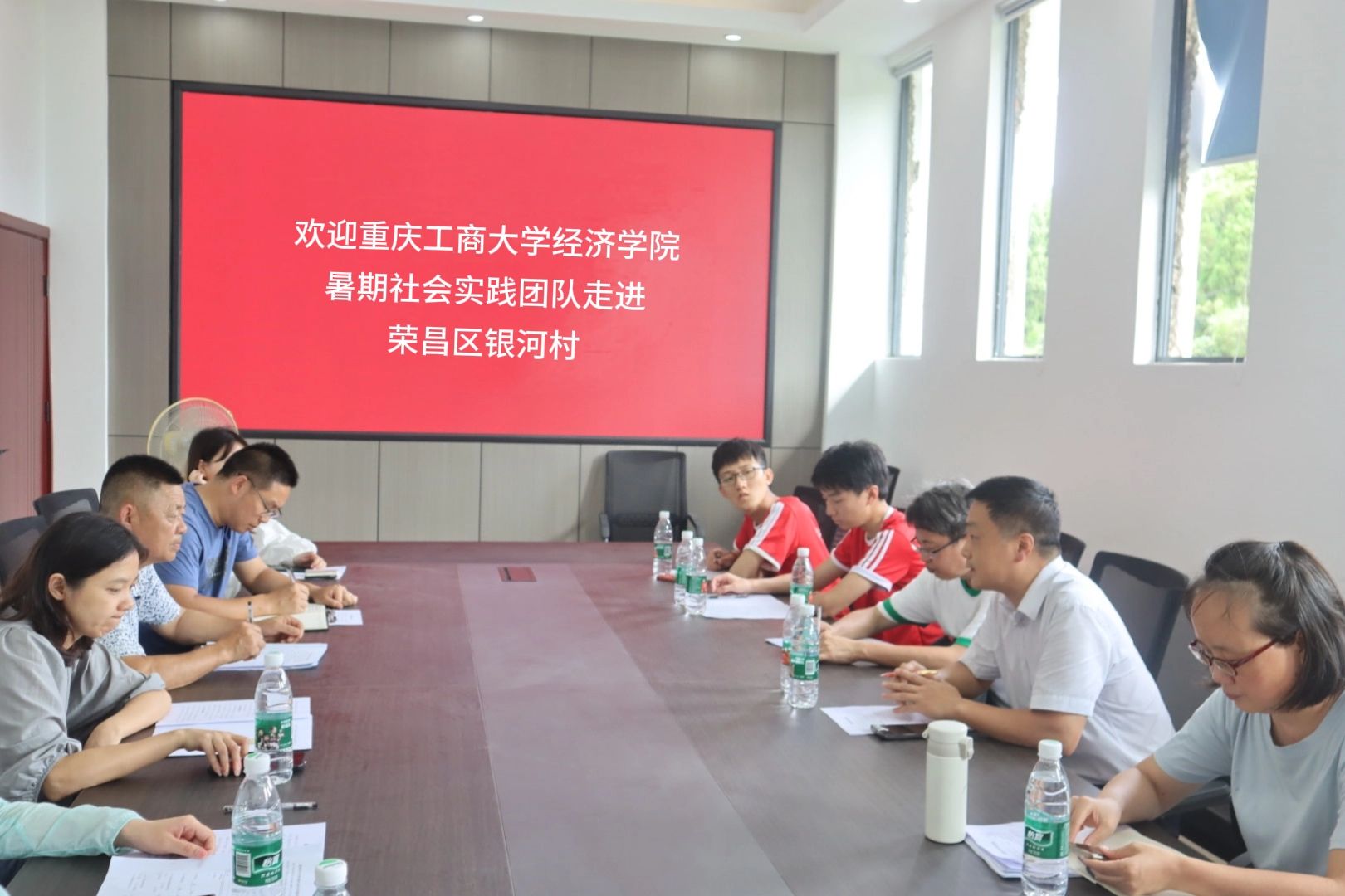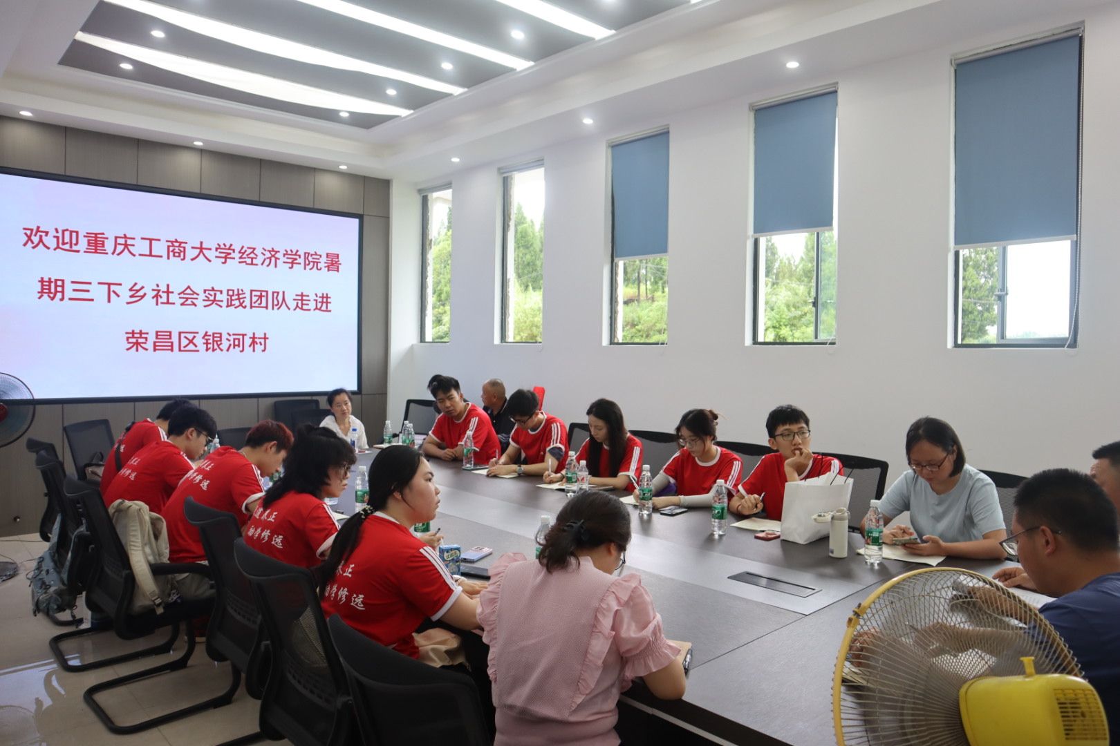 (图为 潘蓝岚镇长、白海龙书记同银河村村干部以及实践团成员开展座谈会)