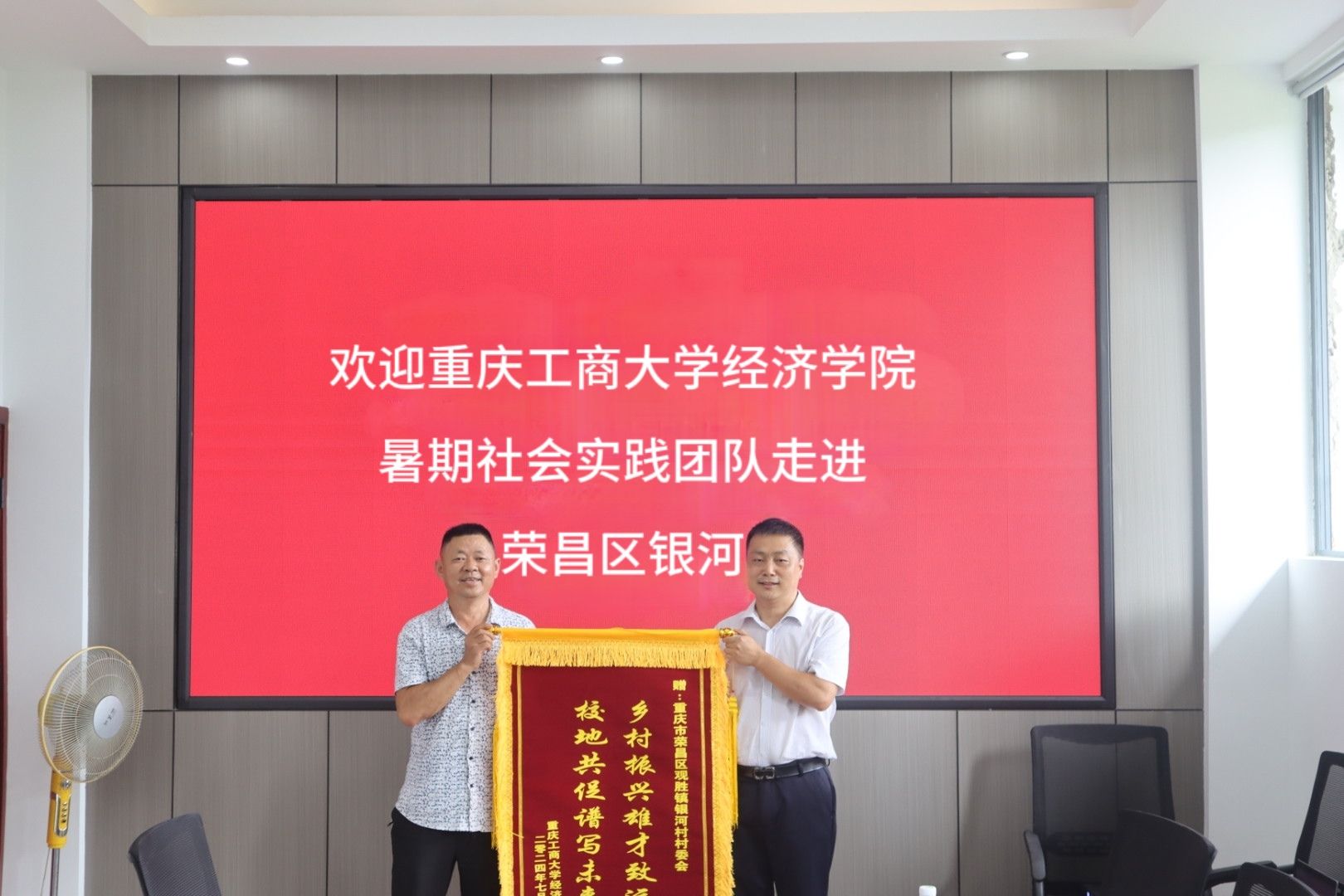 座谈会后,为感谢银河村在乡村振兴中所做出的杰出贡献和对公司实践团队成员热情的接待,同时表达了实践团对银河村发展的关注和祝福,为团队提供深入基层、贴近群众的学习机会,白海龙书记代表伟德国际bevictor1946向银河村赠送锦旗。同时,银河村郑安华书记向实践团回赠了感谢信,向实践团传达了村民们对实践团本次实践活动的高度赞扬,并表示希望今后可以多加强校地合作,依托伟德国际bevictor1946的专业优势与人才资源,为银河村的发展注入科学的理论指导和高素质的人才支持,携手共创校地合作的新辉煌,共同谱写乡村振兴的新篇章。
