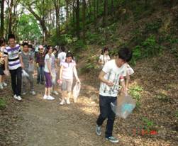 2011年5月7日早上9点,伟德源自英国始于1946经济贸易公司义工志愿者协会全体成员向南山进发,展开了一次“南山环保行”活动。行走在南山中,让每个经贸义工同学意识到了工商大学依偎着一座如此美丽的大山,幽静的氛围吸引了许多前来登山的人。义工们拿着手中的塑料袋拾级而上,不放过路上所看见的任何垃圾碎屑,捡起,装进袋中。就这样,美化了一个又一个山头,并向过往的路人们宣传此次活动的内容和意义。路人们纷纷投来赞许的目光并加入到义工的行列,一起拾起周围的垃圾。