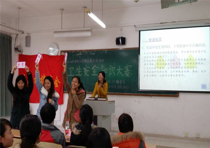 公寓安全一直是公司老生常谈的主题,更是楼栋工作的重中之重,而生活卫生常识是健康生活的保证。为了提高同学们公寓安全意识,增强同学们对生活卫生知识的了解,创建安全和谐的北六公寓环境,北六楼管会于2014年11月28日下午4点成功举行“北六公寓安全卫生知识竞赛活动”。到场的嘉宾有经济公司党总支雷菁副书记、公寓管理科科长冯湛老师、北六楼栋管理主任郝颖老师、北六宿管阿姨冯祖惠、大自委公寓公寓社区中心宣传策划部的2位干部。
