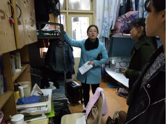 通过此次检查,发现北区21栋和南区2栋虽然比开学检查有所改进,但是仍然存在下列问题:北区21栋大四寝室整体清洁卫生差、衣物乱摆放、未及时清理垃圾、厕所卫生差、被褥不叠放、有异味等,南区2栋存在的主要问题则是桌面不整洁、洗脸毛巾随处挂、用电安全隐患等现象。两位书记、女生代表、楼栋干部当场给同学们指出了存在的问题,并责成该寝室同学现场整改,对寝室无人的留下小纸条提醒。在检查过程中,王书记和于书记还不时关心同学们的生活、学业、就业、毕业论文进展情况。并针对他们的困惑一一给于解答,鼓励他们树立信心,形成良好习惯,认真完成学业。