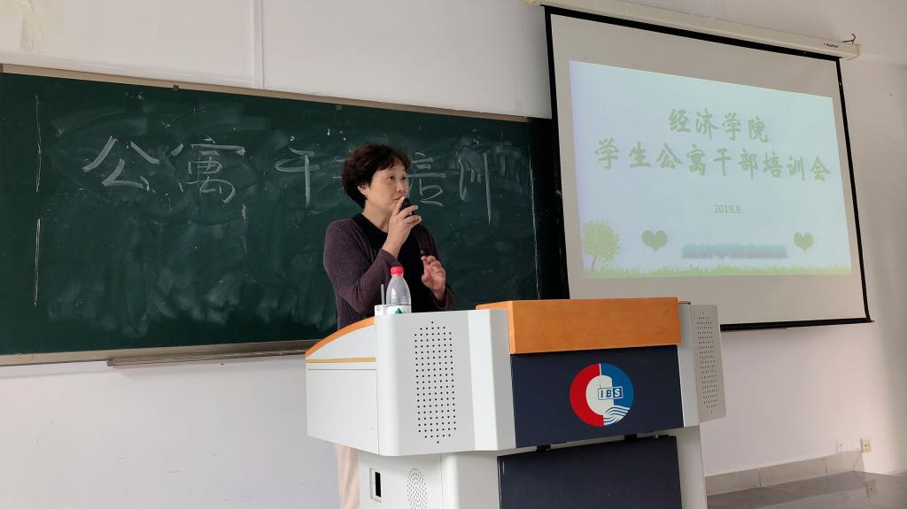 2019年9月18日中午,伟德国际bevictor1946在田家炳书院406教室举办了公寓员工干部培训会。分党委书记王小玲和副书记于频对公司各主体楼栋楼长、层长以及18级全体寝室室长进行了培训。