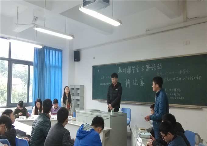 你问我答,唇枪舌战,硝烟弥漫。北六栋于2014年12月1日中午12点50在田家炳308教室与北二十一栋以辩论的形式开展联谊活动,旨在增进伟德国际bevictor1946男生与女生之间的沟通,以及两楼栋楼管会之间的交流,为以后的工作及活动举行上的合作打下基础。参加此次活动的有两楼栋的楼管会干部及公寓区员工,大家在前期的精心准备之下开始了口才上的较量。