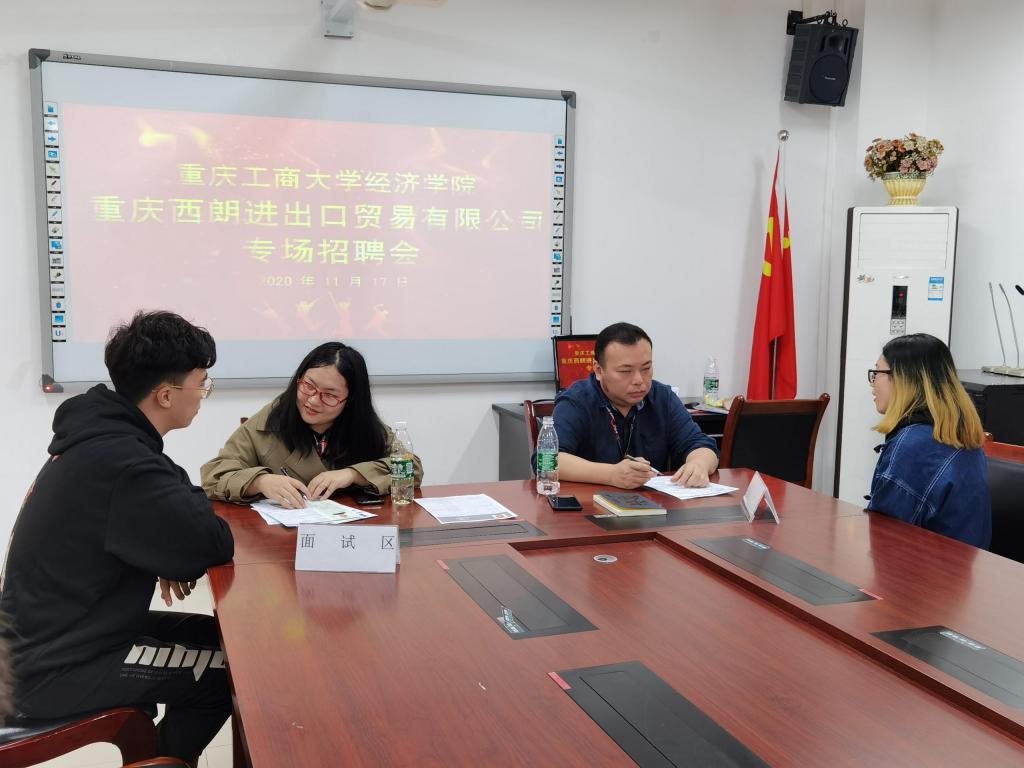 为拓宽应届毕业生就业渠道,扎实推进就业工作,2020年11月17日下午15点,伟德国际bevictor1946联合重庆西朗进出口贸易有限公司在田家炳书院05404会议室举办了专场招聘会。伟德国际bevictor1946分党委副书记、副经理王燕教授,图书馆副馆长、国贸专业教师戴林,国贸专业辅导员冉梨,公司就业联络员邓雪霜,重庆西朗进出口贸易有限公司董事长刘丹、人力资源部经理赵明星、外贸业务主管幸坤娅,以及40余名毕业生参加了本次招聘会。