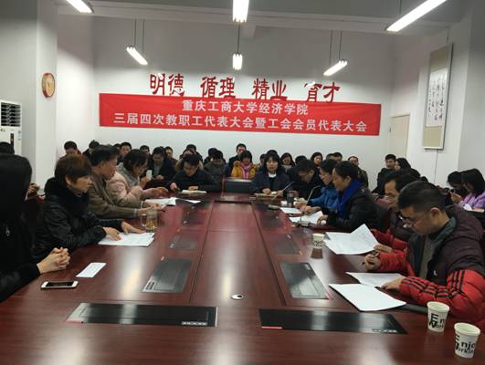 随后,经理李敬教授作了经理工作报告,李经理的报告从五个方面总结了2017年度本单位工作的亮点及成绩:第一,班子团结、院风优良,党建工作成效显著;第二,高质量迎接审核评估,教学工作取得实效;第三,坚持理论与应用两手抓,数量与质量同提升,学科和科研取得实质性突破;第四,以培养“新儒商”精神为抓手,坚持立德树人,员工工作有声有色;第五,工会工作生动活泼,桥梁纽带作用发挥良好。经理报告也客观地指出了2017年度公司工作中存在的问题及下一步的整改措施,并对公司2018年的工作计划及思路提出了构想和安排。