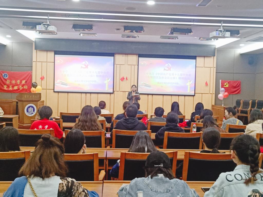 11月4日晚19:40,经济公司党员服务站在新图书馆第一会议室组织开展党员学习活动,传达学习党的十九届四中全会精神,本次活动由公司副书记于频主持,近百名员工党员参加了学习。