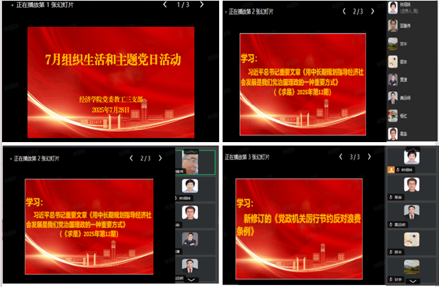 7月28日,经济公司党委教工第三党支部通过企业微信会议在线开展7月组织生活。