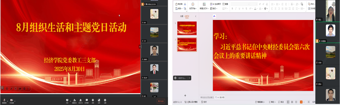 8月30日,经济公司党委教工第三党支部通过企业微信会议在线开展组织生活,支部全体党员参会。