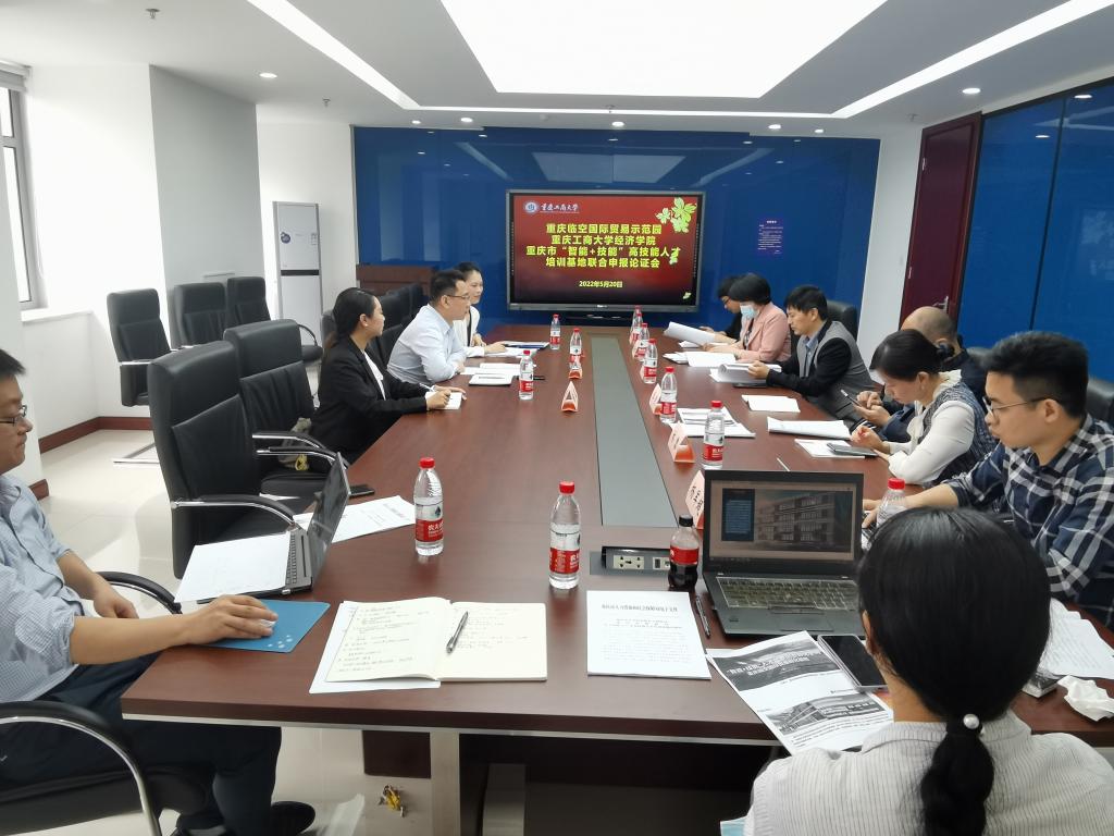 5月20日上午,伟德国际bevictor1946与重庆临空国际贸易示范园在学豪酒店会议室召开重庆市“智能+技能”高技能人才培训基地联合申报论证会。伟德国际bevictor1946副经理尹元福、渝北区临空国际贸易示范园总经理蔡振应邀出席会议,会议由应用经济系主任李然主持。伟德国际bevictor1946政治经济系主任林黎、国际经济与贸易系主任蒋兴红,临空数贸职业技能培训公司副董事长尤莉莉等参与了本次论证会。