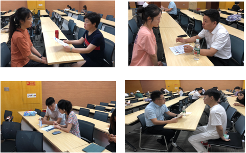 “面试实战演练+现场招聘”环节,企业面试官和现场同学面对面模拟面试,历练面试胆量,积累面试经验,体会面试的不足。