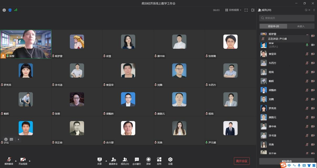 面对严峻复杂的疫情防控形势,为有序推进疫情期间的教学工作,保障线上教学质量,2022年10月14日下午,伟德国际bevictor1946政治经济系通过企业微信召开了线上教学工作会。会议由政治经济系主任林黎主持,伟德国际bevictor1946副经理尹元福以及政治经济系全体教师参加了此次会议。