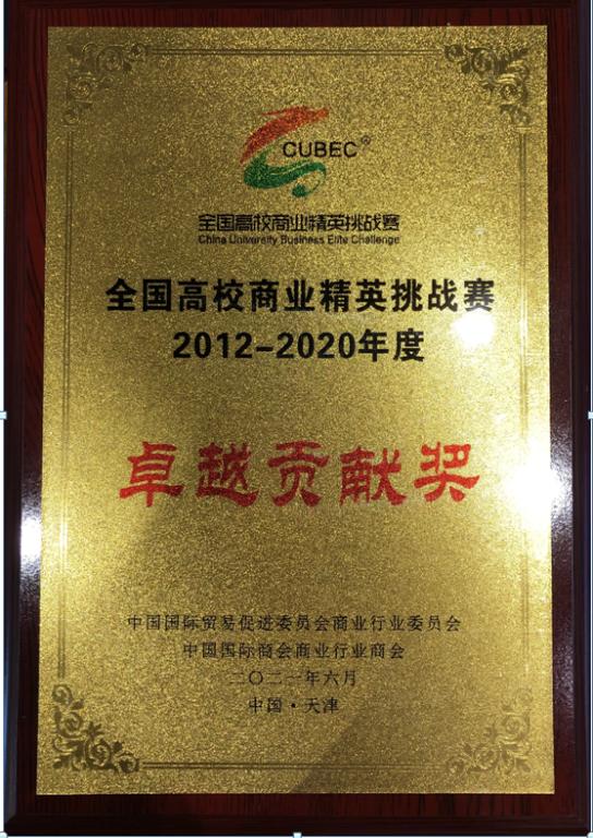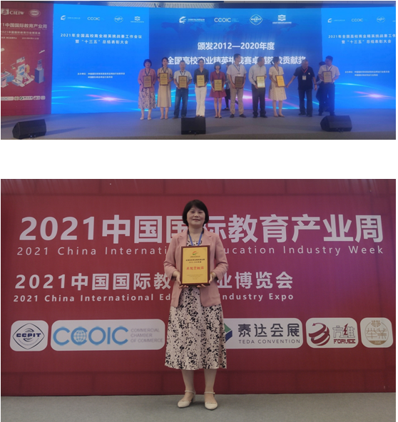 由中国国际贸易促进委员会商业行业委员会、中国国际商会商业行业委员会主办的“2021中国国际教育产业周”活动6月9日-11日在天津梅江会展中心举行,全国高校商业精英挑战赛工作会议暨“十三五”总结表彰大会同期举行,会上对2012-2020年全国高校商业精英挑战赛做了工作总结和表彰。鉴于公司国贸团队在该赛事中的卓越表现,被授予“卓越贡献奖”,伟德国际bevictor1946国贸系主任蒋兴红副教授代表团队领奖。