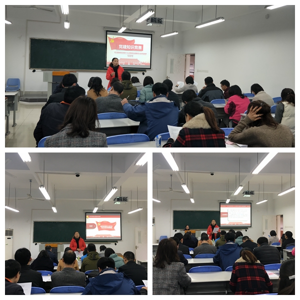 比赛在经济公司党委王小玲书记饱含热情的致词中拉开帷幕,王书记表达了对此次活动的期待,希望大家积极参与。经济公司党委组织委员郝颖老师介绍了竞赛规则,分“笔试和抢答”两个环节,抢答题回答正确就可以积得10分,最后以笔试和抢答的分数分别评出一、二、三等奖和优秀奖。党员老师们都热情高涨,积极思考并举手抢答,现场气氛推向高潮,王书记阶段性评价、讲解,整场赛事有张有弛。