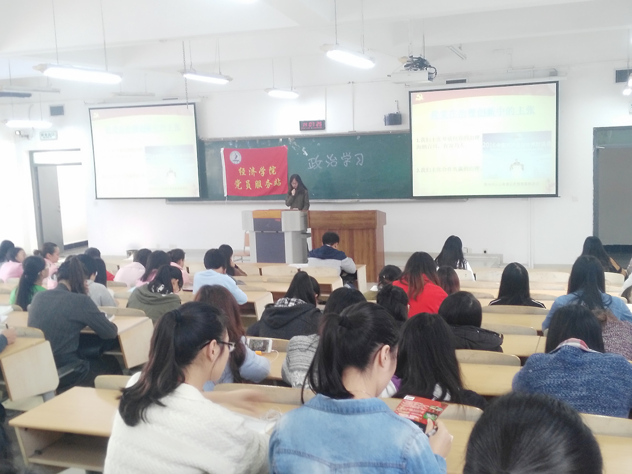 2016年10月14日,中国共产党与世界对话会议在重庆开幕,为了解会议内容,启示以及我党治理创新主张和作为,经济公司党员服务站11月18日在07222开展政治学习,由政治学习部站员田慧珺主持讲解。
