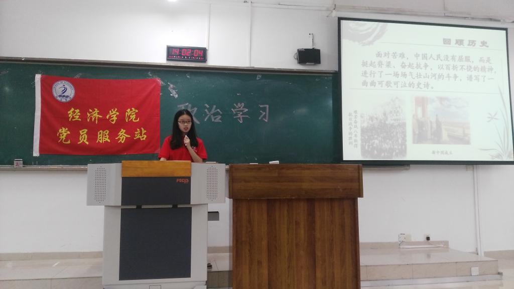2016年7月1日,庆祝中国共产党成立95周年纪念大会在北京人民大会堂隆重举行。习近平总书记在会上发表重要讲话,强调坚持文化自信,不忘初心,继续前行。为学习领会七一讲话精神,本周五经济公司党员服务在博智楼7222举行了以“不忘初心,继续前行——坚定文化自信”为主题的政治学习。由政治学习部的陈思担任主持人进行讲解。