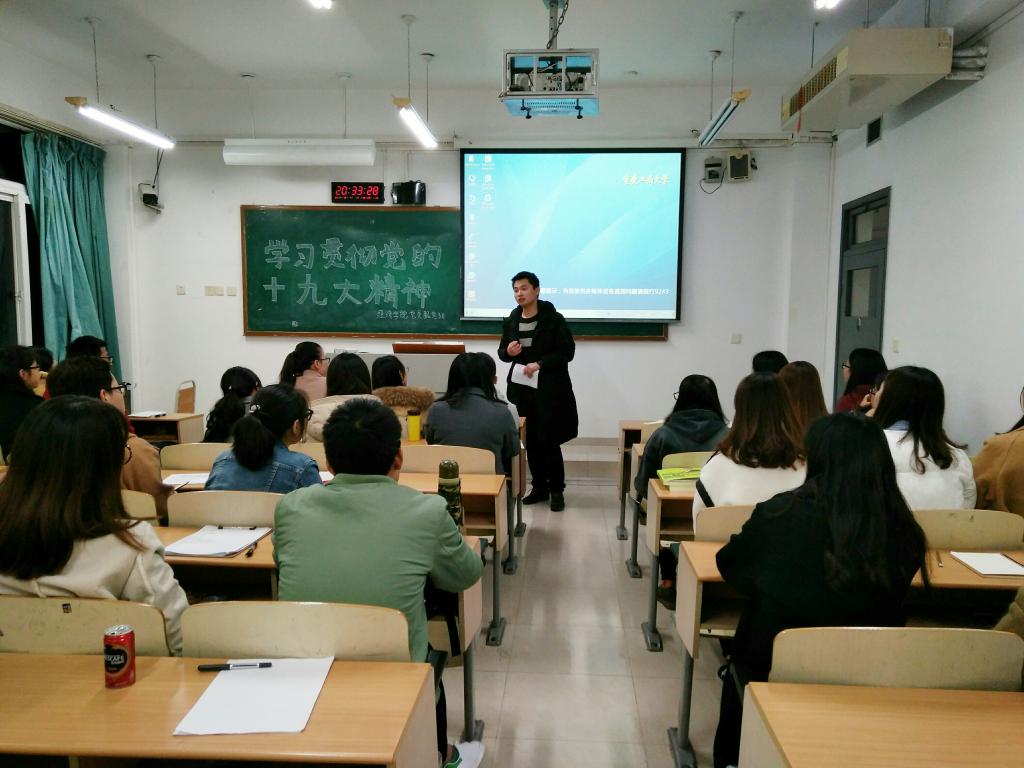 2017年12月7日,公司教工支部书记张弛老师走进课堂,为伟德国际bevictor1946部分党员员工和积极分子宣讲19大精神。党课在南岸校区博智楼7209教室举行,伟德国际bevictor1946分党委组织委员郝颖老师参加了本次政治学习活动。