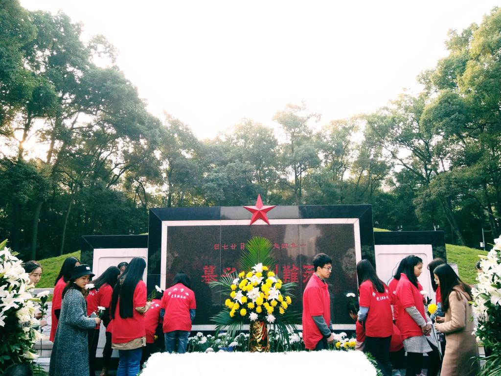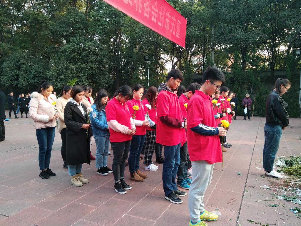 默哀结束后,由经济公司党员服务站站长向“11;27”殉难烈士敬献花篮。同学们井然有序地手拿纯白、金黄的菊花,献给烈士墓内的英灵。随后,同学们各自静静地绕场一周瞻仰民族英雄的革命事迹,怀着无比诚挚的心情缅怀为革命事业取得胜利而献出宝贵生命的先烈们。