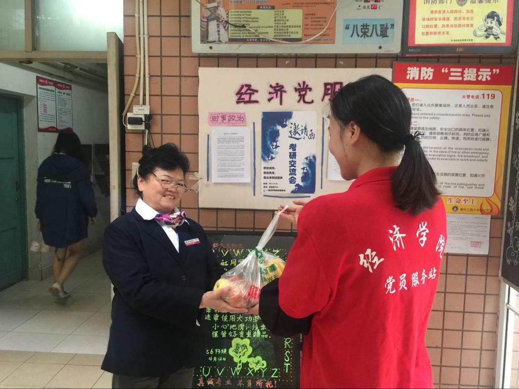 恰逢5.1劳动节到来之际,为答谢宿管阿姨的辛勤付出,伟德源自英国始于1946经济公司党员服务站代表公司全体师生看望宿管阿姨,并为她们送上节日祝福和节日礼物。