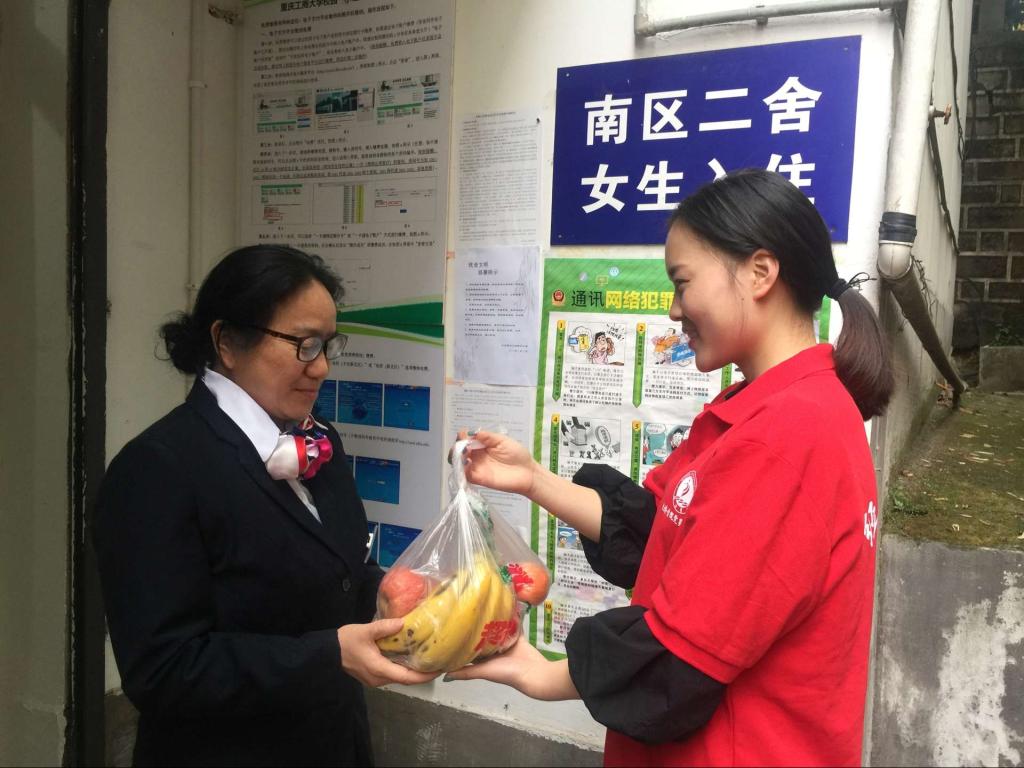 送祝福的同学们首先来到了公司员工住宿楼员工公寓北区6楼和21号楼,大家都受到了宿管阿姨们的热烈欢迎,同学们与宿管阿姨亲切交谈,为阿姨们献上了精心挑选的季节水果作为礼物,以表达同学们最诚挚的祝福。同学们表示,宿管阿姨与同学们不是亲人,胜似亲人,她们日夜坚守在岗位上,以自己吃苦的精神和踏实的劳动默默无闻地为广大师生工作着、奉献着,在这样的节日里我们绝不能忘记她们的无私奉献。阿姨们收到祝福后脸上洋溢起幸福的微笑,并对同学们表示了感谢。随后同学们还走进了伟德国际bevictor1946南区2号楼以及公司其他的员工公寓,为宿管阿姨们送去了节日的祝福。