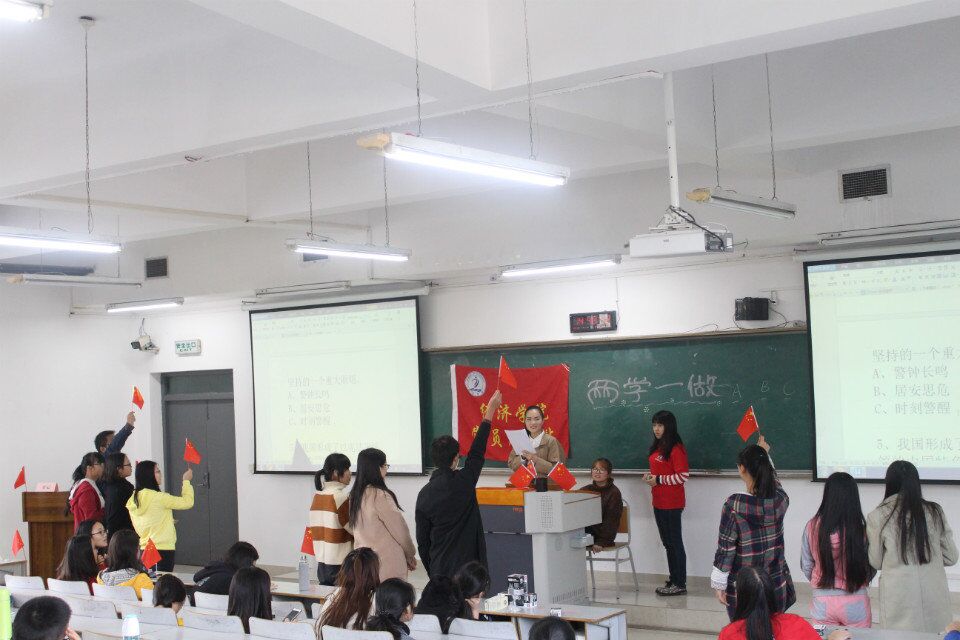 然后,伴着知识竞赛的展开,全场活动进入高潮。诸位站员积极参与,现场氛围活跃,同学们在比赛中扩宽认识,结交朋友,实现了将“两学一做”精神学习生动化具体化。获胜的队伍由党服服站长李翌雪为他们送上了丰厚的礼品。