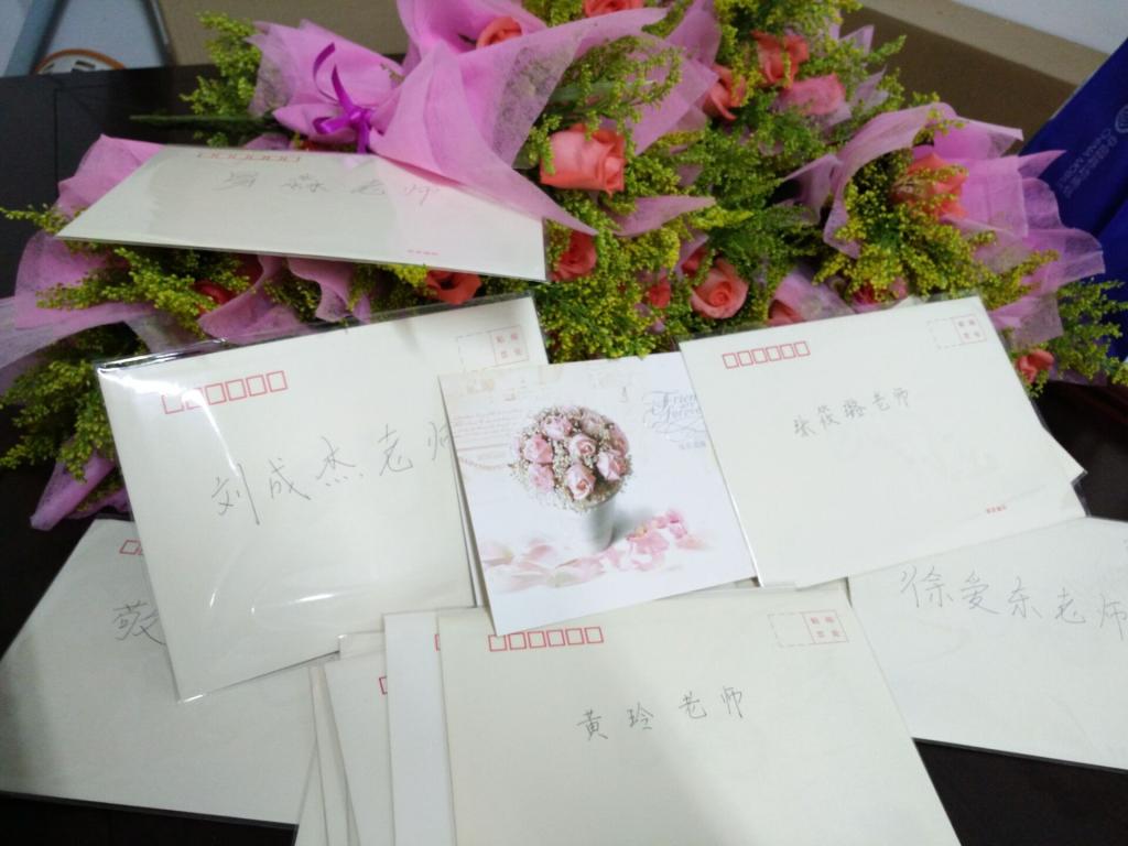 下午三点,经济公司党员服务站站长们带着早已准备好的节日贺卡和鲜花,来到了忙碌的老师办公室,给他们节日的惊喜。老师们总是站在没有鲜花的讲台,默默地挥洒着自己的青春与热情,像春蚕、似细雨。所以党服成员带来的祝福令老师们倍感欣慰,贺卡上流露的丝丝感激与祝愿让老师的脸上和心里都绽开美丽的笑容,好似一下子忘却了开学的忙碌。党服成员与老师们进行了亲切的交流。这样其乐融融的在一起,为教师节增添一抹温暖与感动,也给老师们留下美好的记忆。