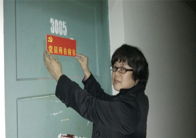 经过前期的统计,一共14个寝室成为党员所在寝室。下午四点,雷菁书记、郝颖老师和北六的站长部长一起,依次为3005、3030等寝室挂牌。接受挂牌的员工党员对于此次活动,她们表示感受到了同学们的期待,感到更多的是鞭策,是动力,是一种要为同学多做好事,多做实事的责任感。