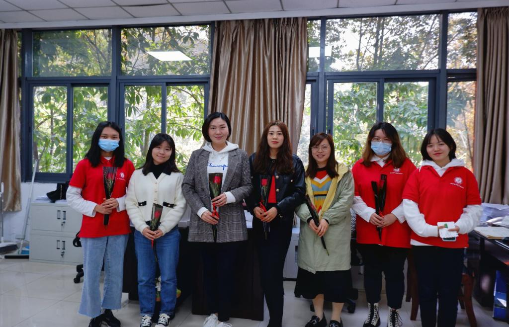 阳春三月,草长莺飞。在这春暖花开的季节我们迎来了第112个“三八”国际劳动妇女节。为了倡导同学们用实际行动践行尊师重教、尊重女性的传统美德,表达公司学子对女教职工的尊敬与热爱之情,经济公司党员服务站特此举办了“迎三八,送祝福”活动,为女教职工送去鲜花和贺卡,向辛勤耕耘在工作岗位、无私奉献青春智慧的女教职工致以节日祝贺和诚挚问候。经济公司党员服务站部分20级成员向经济公司党委书记李自维教授,党委副书记、副经理宋瑛教授,党委副书记、副经理王燕教授以及公司综合办和学团办的老师们,以及北15,北6、南5的楼管阿姨送去了节日祝福。