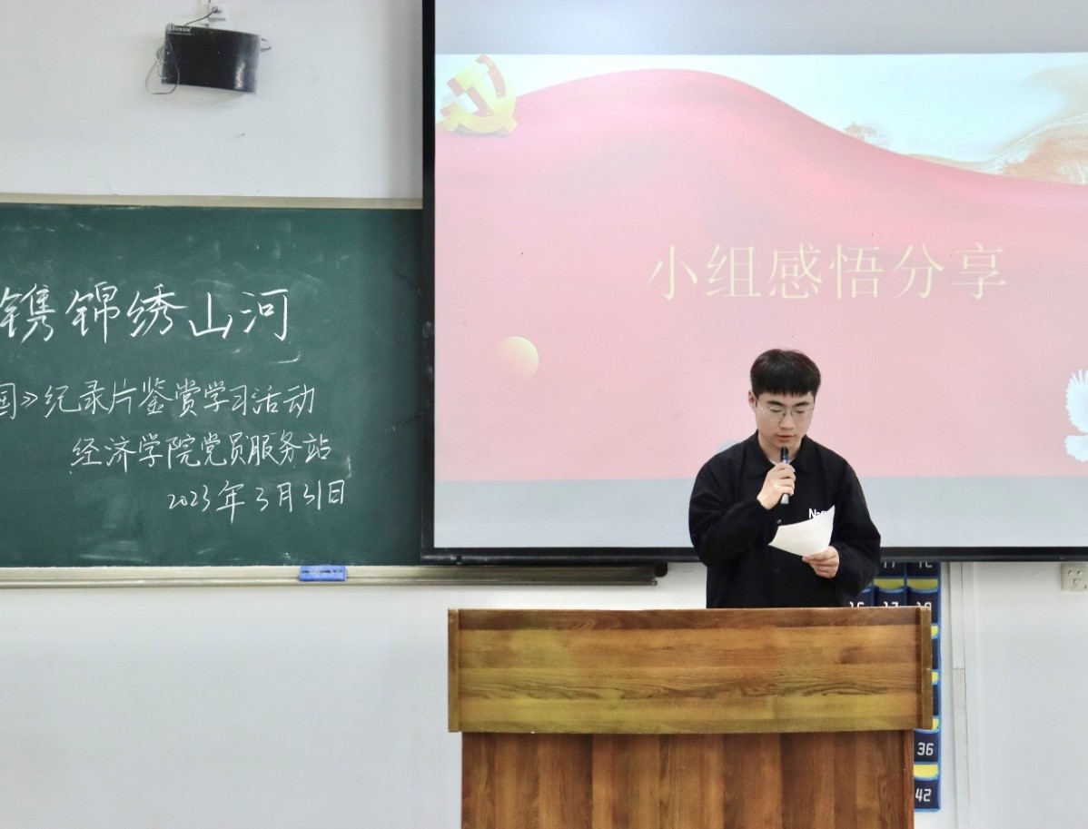 “生态兴则文明兴,生态衰则文明衰。”为了让站员们从不同角度领略祖国自然风光,了解中国特色生态文明建设道路上的生动故事,见证一代代中国人在建设美丽中国路上的努力成果,经济公司党员服务站于3月31日在博智楼07208举办了“览华夏阔幅,镌锦绣山河”——《美丽中国》纪录片鉴赏学习活动。本次活动由21级财政一班杨天瑞同学主持,共50余名站员参与其中。
