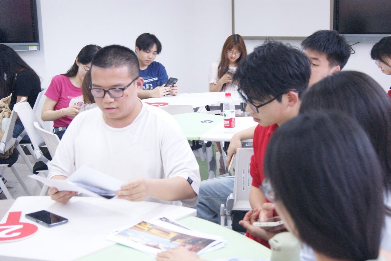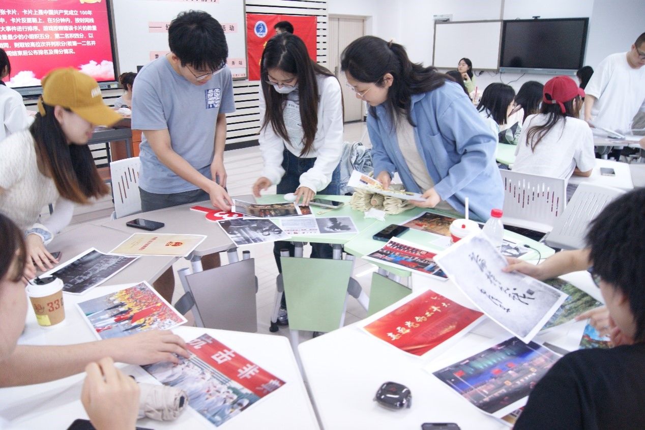 下午15:00,活动正式开始。主持人向站员们介绍活动规则,本次活动包括光辉历程、红心识曲、红图猜事、红韵接力和红潮交易五个游戏环节。活动过程中站员们积极参与,小组成员默契配合,积极探讨,在光辉历程游戏环节中站员们目不转睛地分辨图片上的经典场景,有的人则迅速将图片凭借自身知识储备排序,场面一片热闹,各小组进度你追我赶,不相上下,波澜壮阔的百年党史在同学们手中逐渐形成清晰脉络;红心识曲游戏现场充满了浓厚的历史氛围和激情洋溢的音乐气息,当音乐响起时,一阵阵振奋人心的旋律迅速充满了整个现场,同学们或低头沉思,或互相讨论,主持人热情洋溢地介绍着每一首歌曲的背景和意义,激励着站员们更加深入地了解红色革命历史;红图猜事环节站员们全神贯注观察图片细节,引发头脑风暴的同时,将年代发展、革命建设等知识贯穿其中,寓教于乐;红韵接力环节站员们充分发挥了团队合作的精神,互相配合、互相协助,共同完成了一幅幅富有创意和感染力的作品。他们在创作中不断思考、不断完善,用心用情地描绘着红色历史的光辉篇章;红潮交易环节充满了创业的热情和投资的激情,站员们运用所学专业知识,谨慎地判断市场变化,把握市场趋势和发展方向,力求做出最明智的投资决策。各游戏环节层层推进,站员们沉浸式感受党史脉络,仿佛置身于红色历史的长河之中,感受着那段波澜壮阔的革命岁月。经过激烈角逐,第二小组赢得了最终胜利。