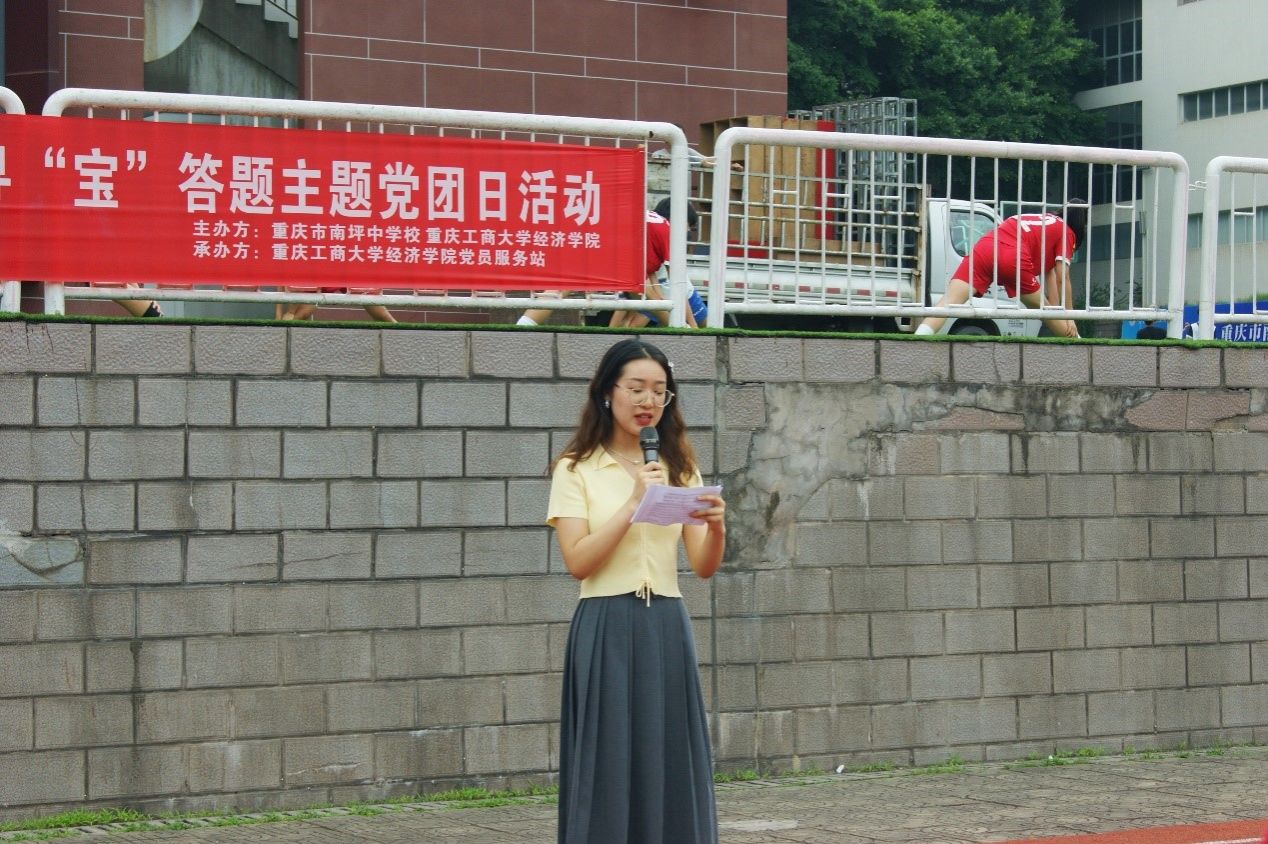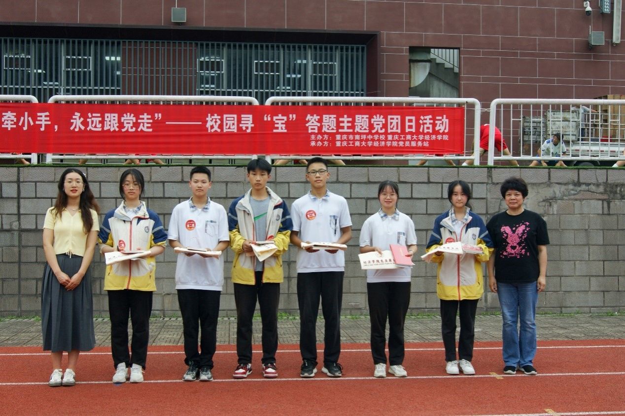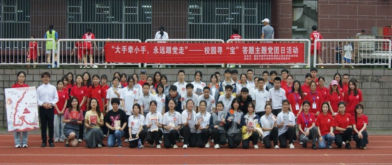 为深入学习贯彻党的二十大精神,落实立德树人根本任务,响应大中小学思政教育一体化建设,营造浓厚的党建氛围,激励广大青年员工跟党走,激发当代青年的爱国热情和历史责任感,引导青年将个人的志向融入到中华民族伟大复兴的征程中,伟德源自英国始于1946经济公司党员服务站携手重庆市南坪中公司,于2024年5月16日在南坪中公司举办“大手牵小手,永远跟党走”——校园寻“宝”答题主题党团日活动。本次活动有共青团重庆市南坪中公司委员会副书记,高中英语教师何晓佳老师;共青团重庆市南坪中公司教师职工支部书记,高中数学教师付诗芹老师;伟德国际bevictor1946正处级专职组织员雷菁书记;公司员工第二党支部书记、公司辅导员喻智成老师莅临现场,由22国贸一班舒雨阳同学主持。