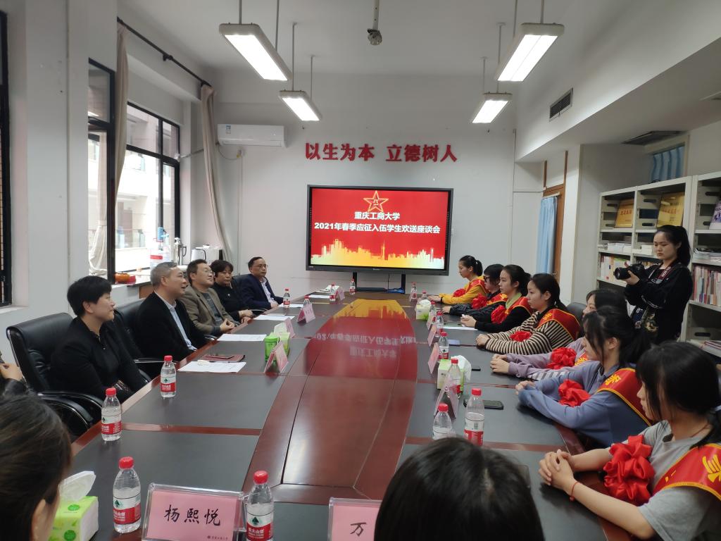 3月18日中午,公司在党委武装部会议室为即将入伍的7名女生举行欢送座谈会。公司党委党委、副董事长李国军同志,公司党委武装部领导、入伍员工家长和退伍员工代表参加座谈会。会议由退伍员工万焮主持。