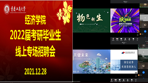 根据教育部公布的最新数据,今年全国考研报考人数高达457万,较去年增加80万,同比增长21.22%,再创历史新高,而伟德国际bevictor1946考研报考率达到60%。面对激烈的考研竞争压力和严峻的就业形势,伟德国际bevictor1946以就业立德树人为根本出发点,立足服务,于12月28日下午,召开“伟德国际bevictor1946考研毕业生线上招聘视频会”。此次招聘会,受到用人单位的广泛关注,共有致同会计师事务所、新大正物业、国信证券、中信建投证券、泰康人寿、重庆百货、重庆商社、鲜丰水果、中南锦时等9家上市以及世界500强企业参加了招聘会。伟德国际bevictor1946副书记副经理王燕,以及毕业班辅导员及就业联络员和9家企业的HR高管参加了本次活动,参会的毕业生员工达212人次。