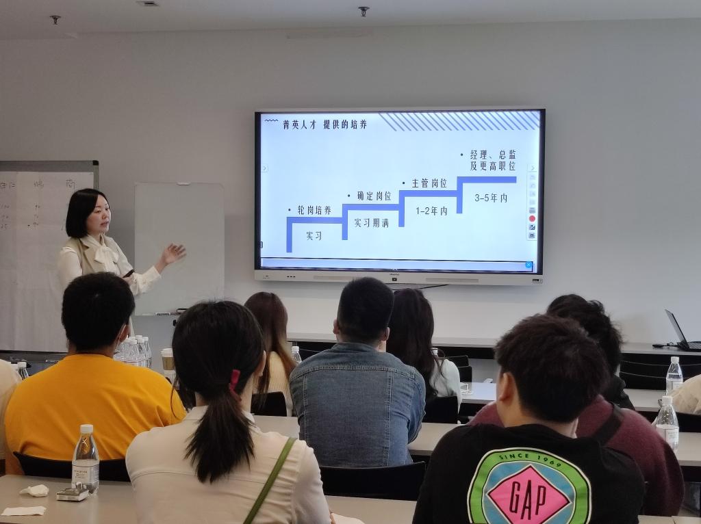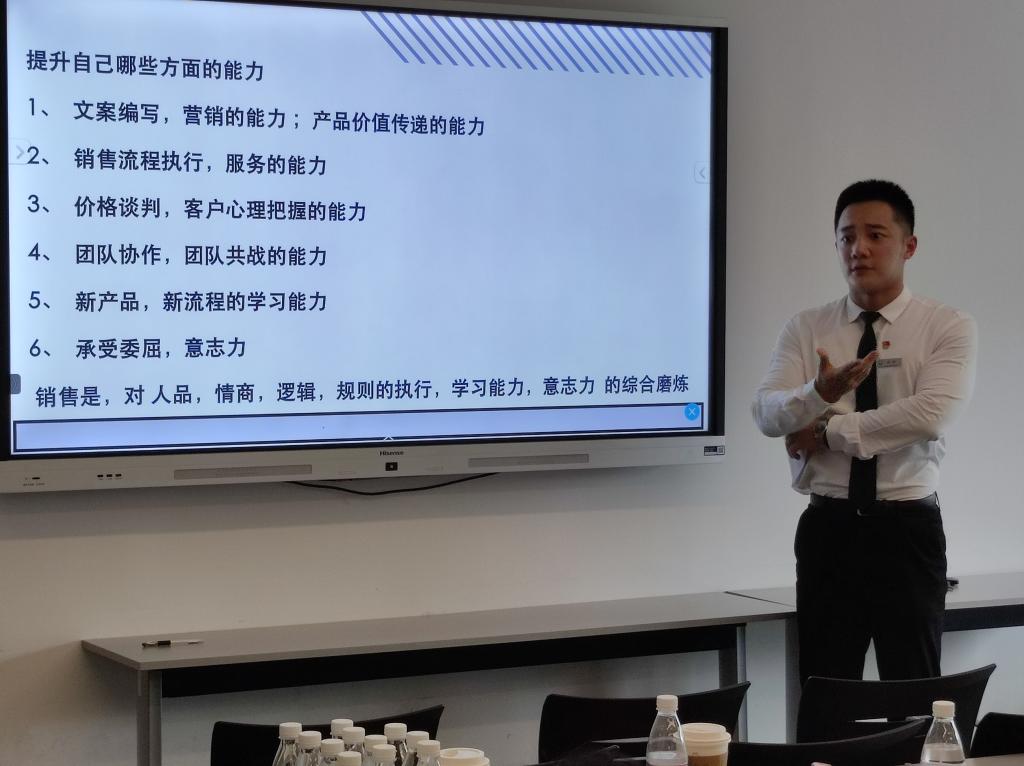 进入商社汽贸奔驰麒兴店,第一位负责人从汽车保有量、新旧车比、消费金融、新能源车、新零售几个方面对汽车行业做了整体介绍,并对大学毕业生到汽贸要经历轮岗实习、确定岗位、1-2年内可升至主管岗位、3-5年升至经理总监或更高职位大致职业生涯做了介绍。第二位负是商社麒兴的售后负责人,他用一句经典的“既能奔驰何必将就”作为发言主线,侧重讲了良好的人际关系能够带来被认可被尊重、生活上得到帮助、自我能力的提升、获得线索增加收入、为未来创造机会等方面进行阐述售后服务的重要性。第三位销售负责人,则从提高销售能力,必须培养文案编写、销售流程执行、价格谈判、客户心理把握、团队协作、新产品学习、承受委屈,坚强的意志力等方面的能力。他总结到,销售是对人品、情商、逻辑、规则的执行,学习能力,意志力的综合磨练。所有参与的同学听后觉得收获满满,感觉三位负责人能够走到今天这一步,与他们平时的努力认真是分不开的。最后一个环节是面试环节,20多个同学被分成4个小组,商社麒兴店的各个部门负责人依次对同学们进行了初步面试,同学们都以自己最佳的状态来展现,面试官们经过初步筛选,确定了进入第二轮面试的人选。