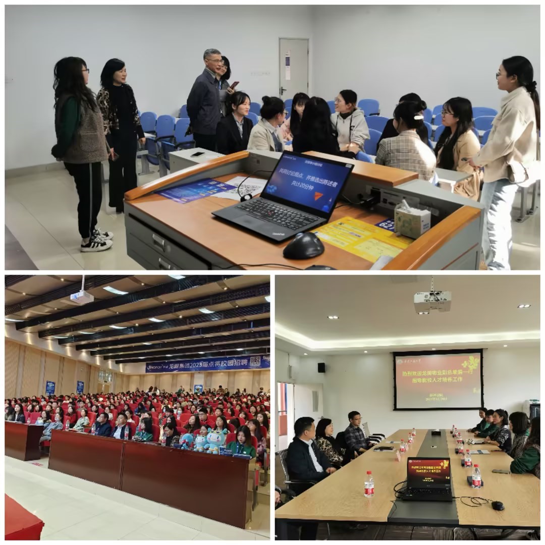 陈运超副董事长深入现场指导工作,与龙湖集团副总经理单娟、人力资源总监黄卓娅、人力资源部部长尹可一行,就员工人才培养质量、学科专业发展、访企拓岗成效、实习就业引导等进行深入交流。陈运超副董事长还在招聘现场与应聘的毕业生进行了面对面交流,引导大家树立积极的就业观,勇于承担当代青年的使命。