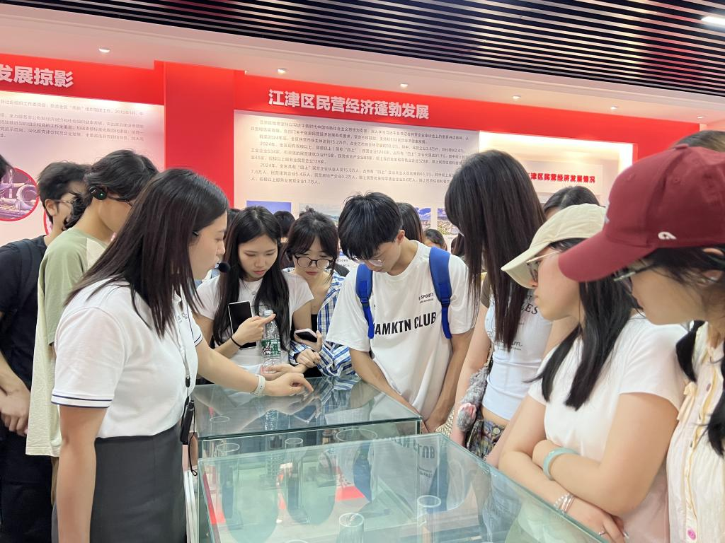 活动第一站,重庆顺美吉医疗器械有限公司展厅内,董事长陈权辉向参访师生展示企业自主研发的智能护理床系列产品。这家拥有多项专利的高新技术企业,其产品远销英国、欧盟、澳洲、美国和中东等国家和地区,为员工上演了“中国智造”的生动一课。