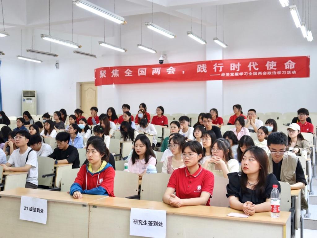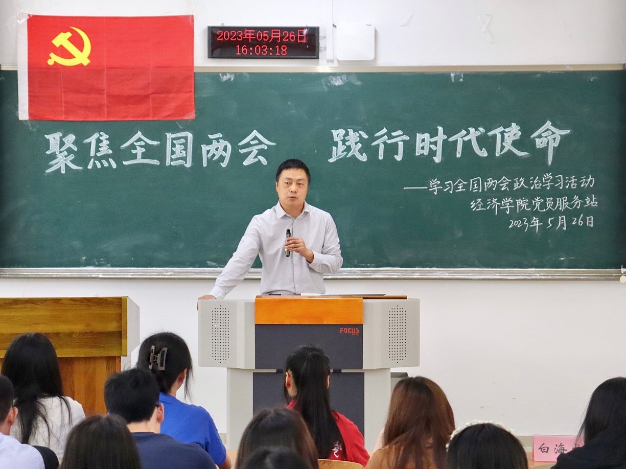 2023年3月4日至5日,全国两会如期在北京召开。这是一场凝聚国家共识的盛会,举国关注、举世瞩目。两会围绕全面贯彻落实党的二十大精神、扎实推进中国式现代化以及全面建设社会主义现代化国家展开讨论。为进一步坚定经济学子的理想信念,传递两会精神,引导经济学子将自身理想与奋斗融入党和国家的发展中,5月26日,经济公司党委白海龙副书记在博智楼07207以“聚焦全国两会,践行时代使命”为主题讲授党课,共80余名党员服务站站员参加学习。