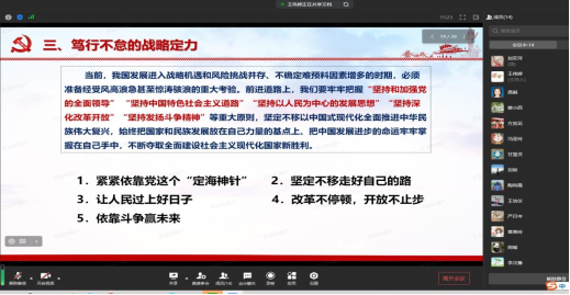 为进一步落实党员教育,深入开展学习贯彻习近平新时代中国特色社会主义思想主题教育。6月28日上午,伟德国际bevictor1946研究生第二党支部全体党员在线上参加以“立志复兴伟业,踔厉奋发前行”为主题的党课学习,此次党课由支部书记高娟主讲。