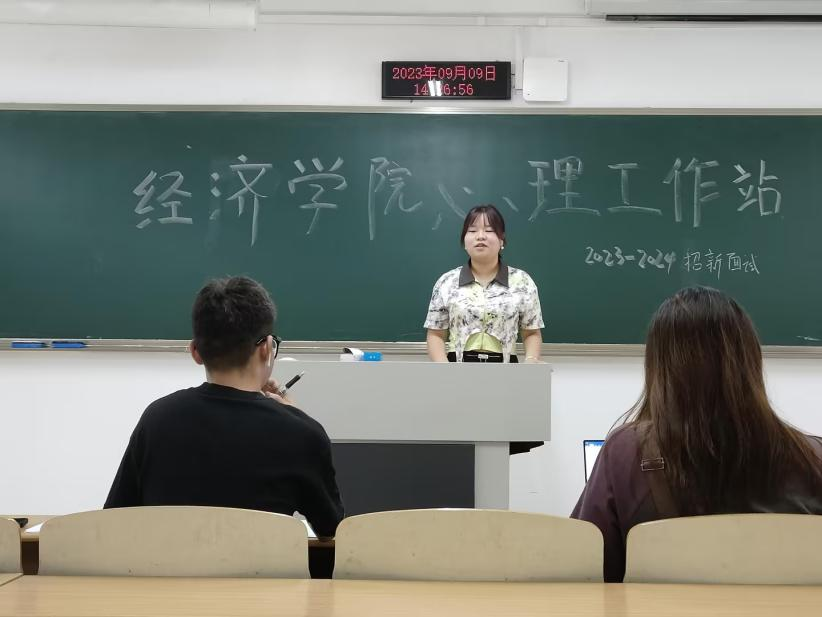 心理工作站站长张远波首先对参加招新的同学们到来表示欢迎,同时介绍了心理工作站的组织结构和规章制度,并详细讲解了心理工作站的相关工作,明确站员们的工作职责。随后,前来参加竞选的同学依次进行简单的自我介绍,说明意向部门、回答工作站负责人提出的相关问题等,招新氛围融洽轻松。同学们积极地表达自己加入工作站想法,迫切希望加入新的组织让才艺得到发挥。