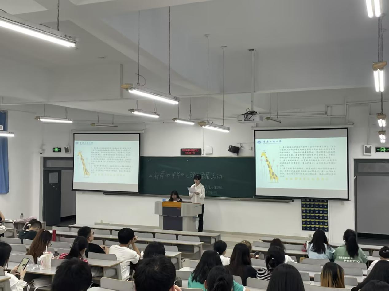 整个电影放映过程中,在座的同学们都被温馨又不失俏皮的电影情节所吸引,同时也被海蒂和克拉拉的纯真友谊所打动。观影结束后,同学们结合影片内容展开了分组讨论,纷纷表示大家应该像海蒂一样无论遇到多大的困难永远保持一颗善良之心,乐观面对生活。最后,主持人组织同学们进行击鼓传花猜歌游戏,现场气氛活跃,并为参加击鼓传花游戏的同学们发放小礼品。