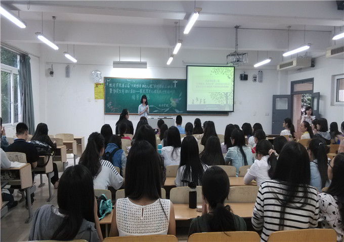 接下来郝颖老师先简单介绍了本次系列活动的具体安排,紧接着进行了精彩的培训讲座,通过PPT展示,加上精彩的语言组织能力,把老员工的心理活动分析的很是生动。偌大的教室座无虚席,大家聆听老师讲话的时候,有的还若有所思,郝颖老师还积极地跟同学解答一些心理上的问题和疑惑。