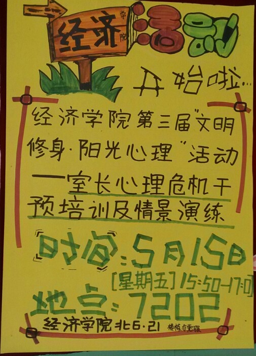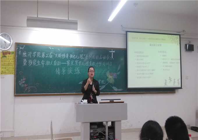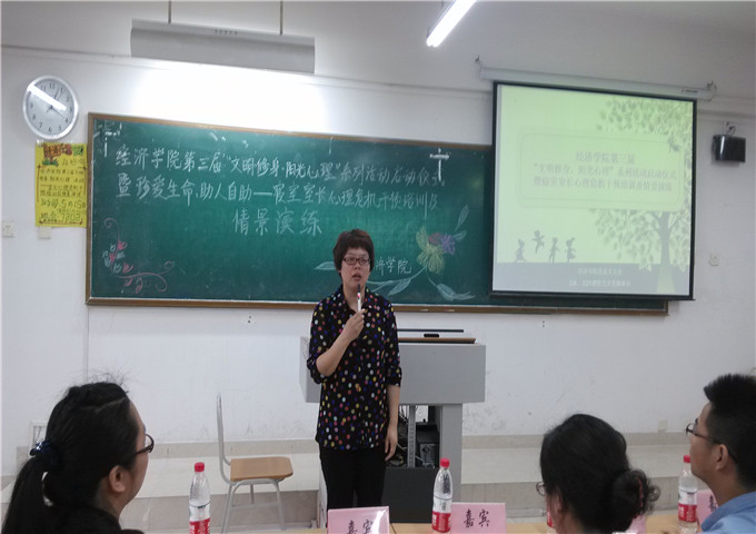 2015年5月15日下午3点50,于博智楼07202教室,举行了由经济公司党总支主办、北6和北21楼管会和党员服务站承办的伟德国际bevictor1946第三届“文明修身,阳光心理”系列活动启动仪式暨珍爱生命、助人自助——寝室室长心理危机干预培训会及情景演练”。此次活动由郝颖老师主讲,经济公司党总支副书记雷菁、伟德源自英国始于1946心理健康咨询中心周明老师、冉梨老师、公司伟德国际bevictor19462012和2013级的寝室室长、各层楼栋干部以及党员服务站的干部们参与了本次活动。